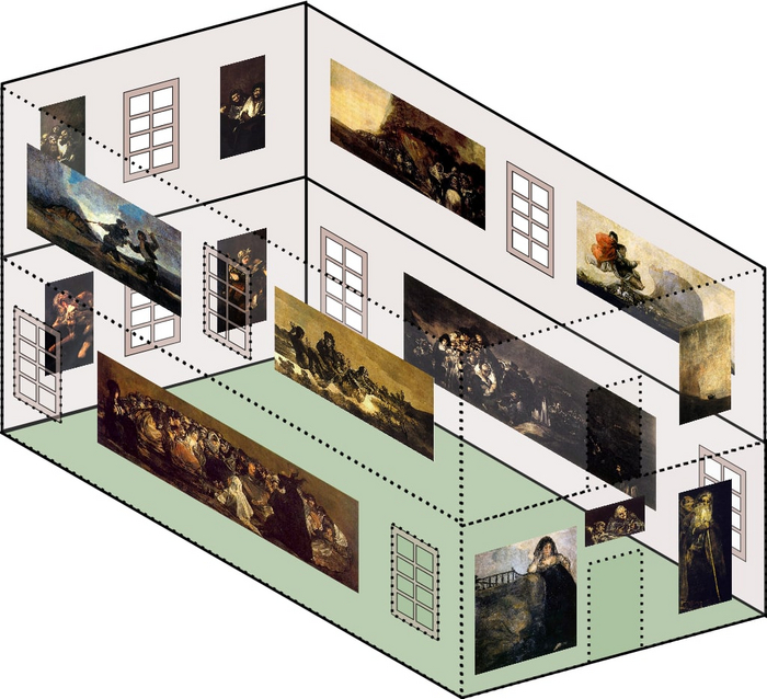 В 1819-м году 73-летний Гойя, всё еще формально числившийся придворным живописцем, вышел на пенсию и приобрел небольшую виллу в пригороде Мадрида. Еще до его приезда соседи прозвали это имение Quinta del Sordo или «дом Глухого». Было бы забавно, если бы именно это название и привлекло Гойю, ведь он и сам был своего рода глухим, в 1792-м, после загадочной болезни (назывались диагнозы от апоплексии до осложнений застарелого сифилиса) художник начал испытывать адские головные боли и почти полностью лишился слуха, так что «дом Глухого» пришёлся ему как нельзя кстати.