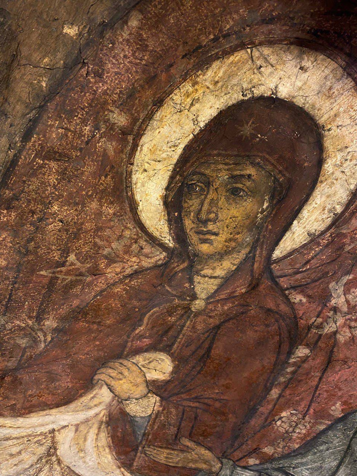 Фрески сильно пострадали, однако сохранились благодаря тому, что стены монастыря были окрашены и оклеены обоями.