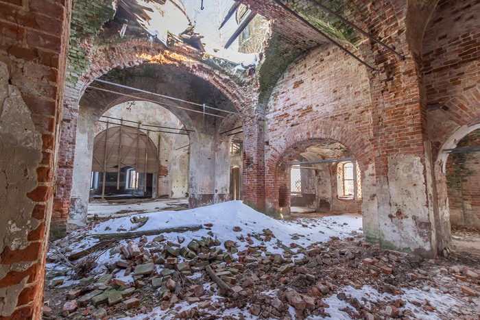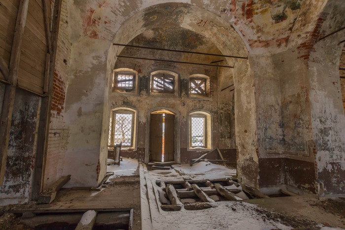 Заброшенная церковь в селе Остров