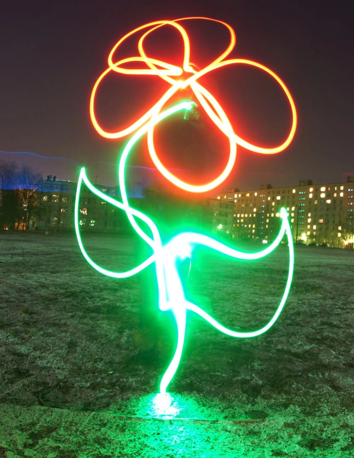 Берем фонарик (лучше цветной), штатив, фотоаппарат и себя. Устанавливаем штатив. С рук не получится- даже легкое движение все испортит. Фотик ставим на максимальную выдержку в темноте и начинаем водить фонариком в воздухе, представляя мысленно изображение которое вам нужно. Ст стороны это выглядит более чем странно. Девушка в потемках, с фонариком приседает, встает, посылает какие-то странные сигналы цветным фонариком. По всей видимости в космос😂