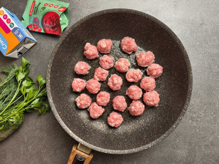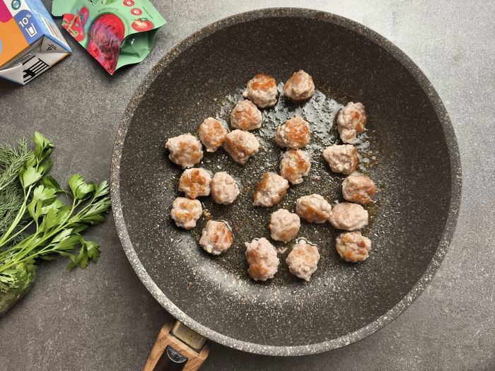 3. Катаем из фарша небольшие фрикадельки и обжариваем на растительном масле