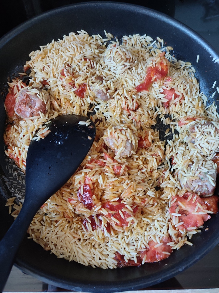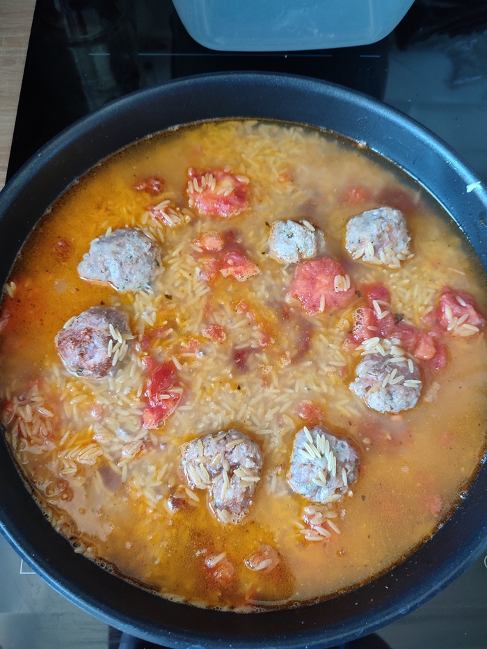 Готовим пасту орзо с фрикадельками, блюдо быстрое и простое.