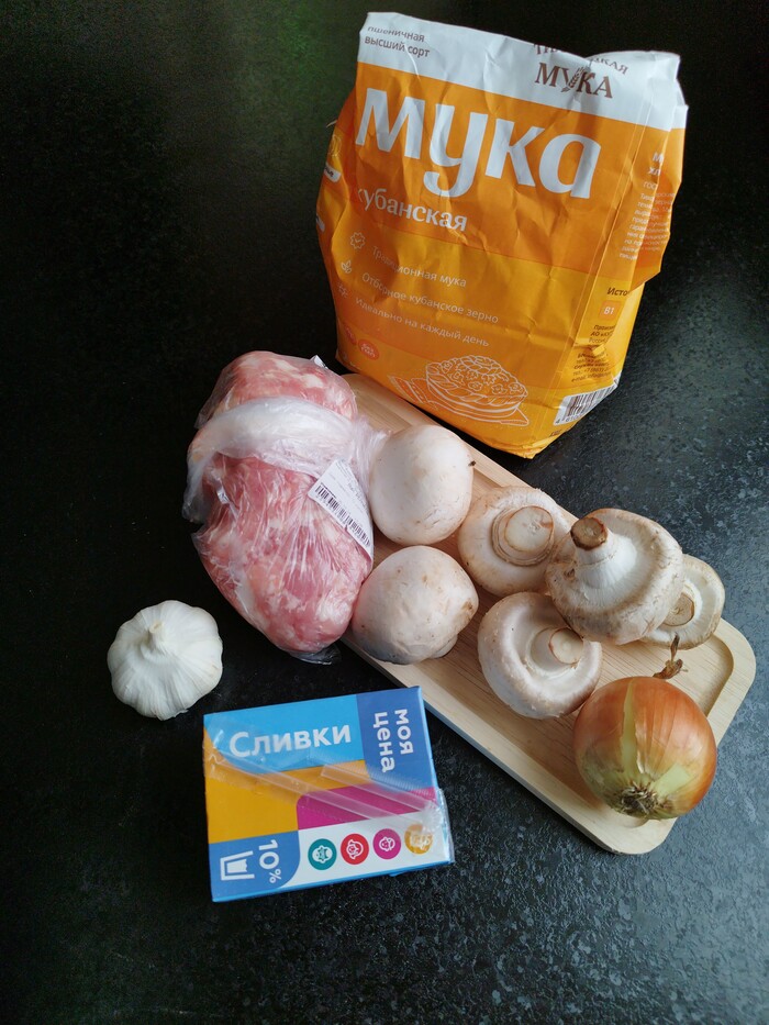 Фарш мясной, Тостовый хлеб, Соль, Перец, Лук.