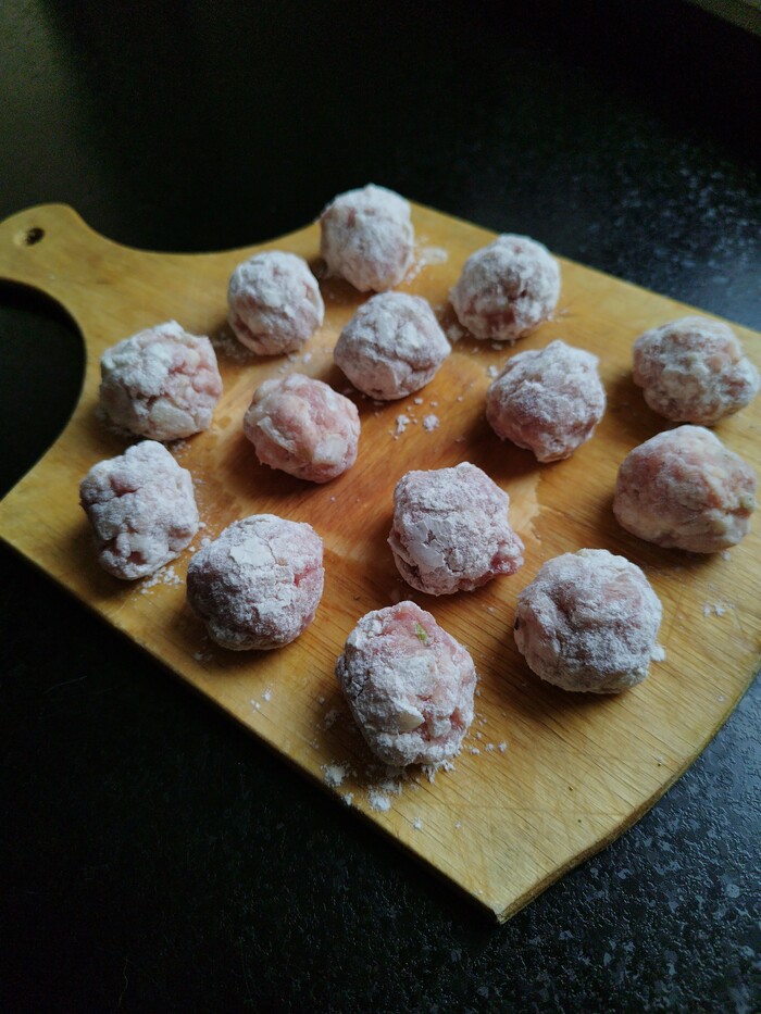3. Формируем руками небольшие фрикадельки и обваливаем их в муке