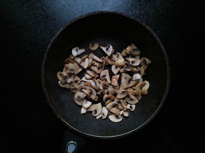 5. Нарезаем шампиньоны как вам нравится и обжариваем их на этом же масле.
