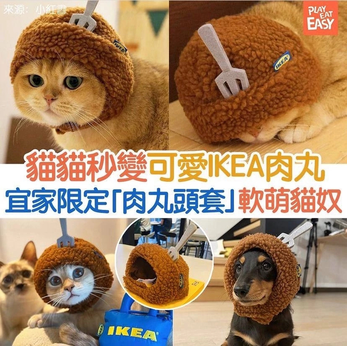 Кроме этого в коллекцию входят шапочка в форме проткнутого вилкой мясного шара и тематический ошейник.