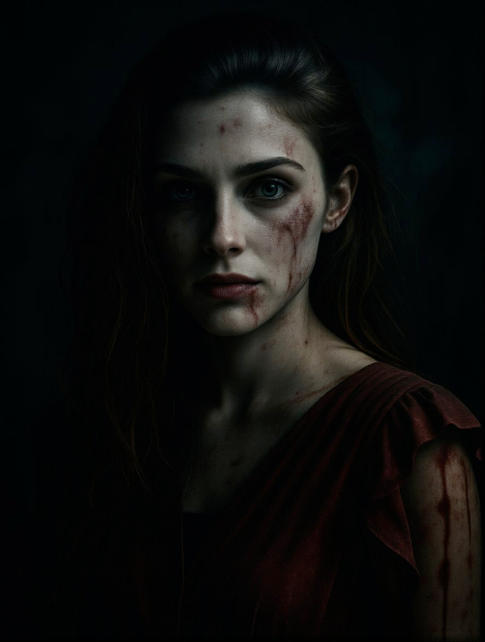Disturbing portrait, приглушенное освещение, резкие контрасты, темная обстановка, атмосфера триллера, фотореализм