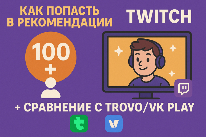 Как попасть в рекомендации Twitch: порог 100 подписчиков + сравнение с Trovo/VK Play