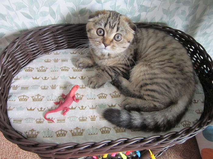 Мне захотелось котенка. Вислоушку. Сидела в инете и искала. Нашла в Подмосковье, по фото. Созвонились, назначили встречу и я решила ехать к ним на такси ( от меня неблизко - часа 3 ехать). Хорошо, я настроилась, все приготовила. И тут от продавца звонок - приезжайте позже, жена по делам куда-то поедет...это меня насторожило...и тогда я решила еще пошарить в интернете...увидела симпотных котят у меня в городе, предлагают также выбрать по фото. А я хотела не по фото, в живую хотела...ну да ладно, подумала я, выберу по фото. И внимательно начала вглядываться в котят. Выбрала девочку, позвонила и стала ждать доставку ( сказали что привезут сами и не нужно ехать к ним). Позвонила прежнему продавцу что не приеду...Звонок из моего города - они уже у моего подъезда! Пришла молодая девушка с корзинкой пластмассовой, на которой сверху ползала маленькая кошечка. Я в нее влюбилась сразу. А почему она не в корзинке? - спросила я. " Она не захотела в корзинке и стала мяукать, пришлось открыть и так идти к вам"- был ответ.