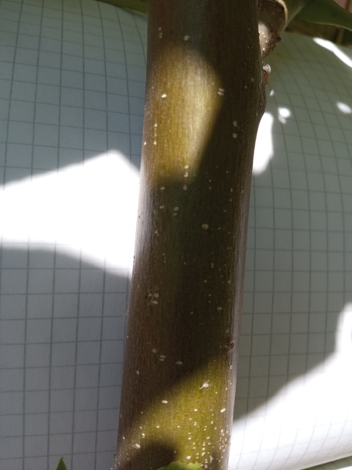 Только после данных изменений(отсутствие жёстких частей у самого дерева) жёсткая часть плодов стала мягкой, до этого, начала ,о чудо, получать фрукты с той мягкой частью, которую мы привыкли есть, отличного качества, без обитателей внутри. Дереву стало самому хватать влаги, но только после того, как ствол стал такого цвета.