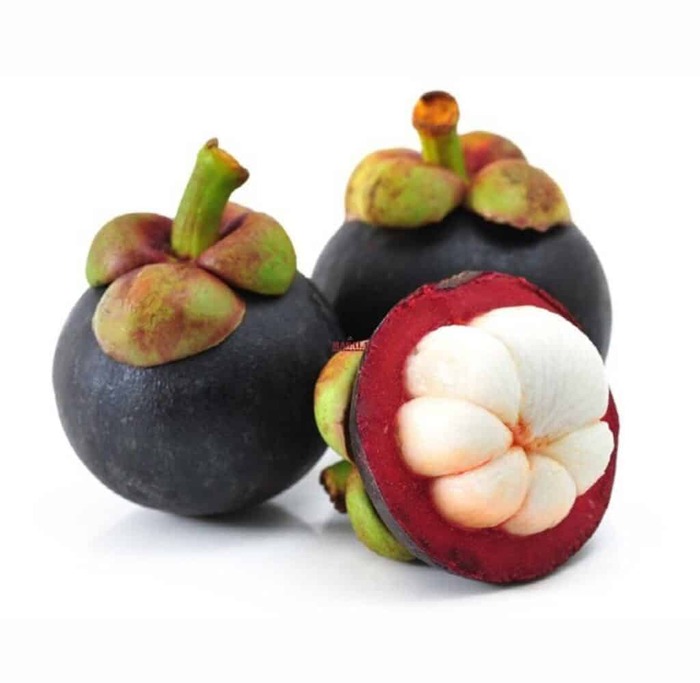 Внешне мангостин выглядит как маленькая фиолетовая коробочка. Внутри — белые дольки, которые по вкусу напоминают смесь абрикоса, персика и цитрусовых.