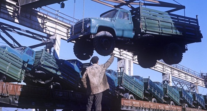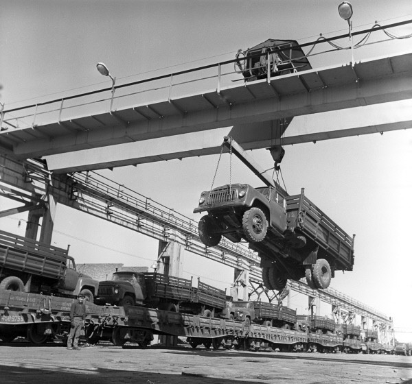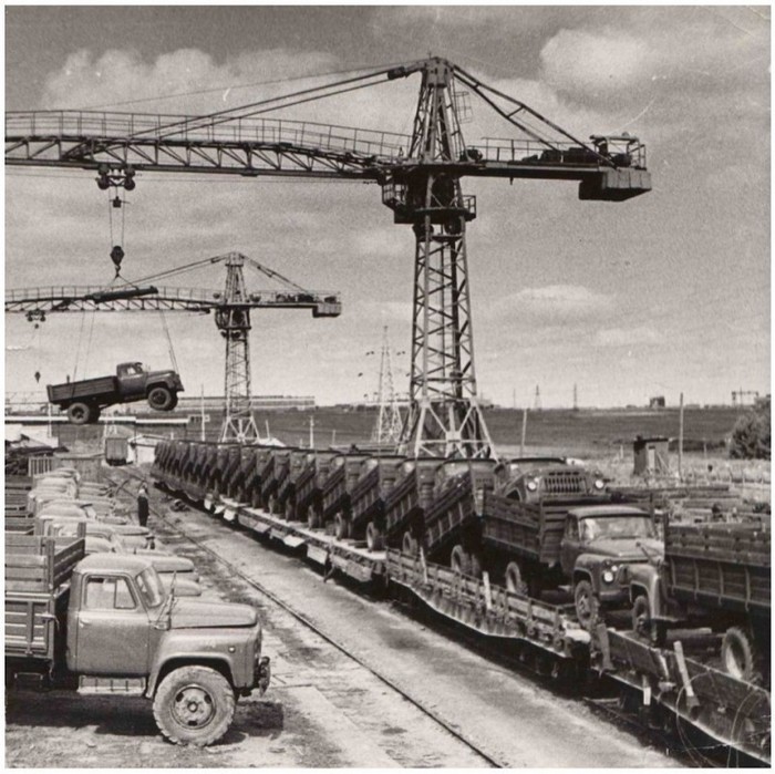 Отгрузка готовой продукции потребителям на Фрунзенском автосборочном заводе; ~ 1972-й год.