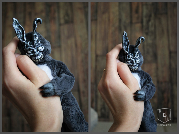 Фрэнк. Персонаж из фильма Донни Дарко. Был создан на заказ. Полностью подвижный. Если хотите, можете сравнить его с моим первым Фрэнком 2014 года https://pikabu.ru/story/fryenk_kukla_ruchnoy_rabotyi_2706328