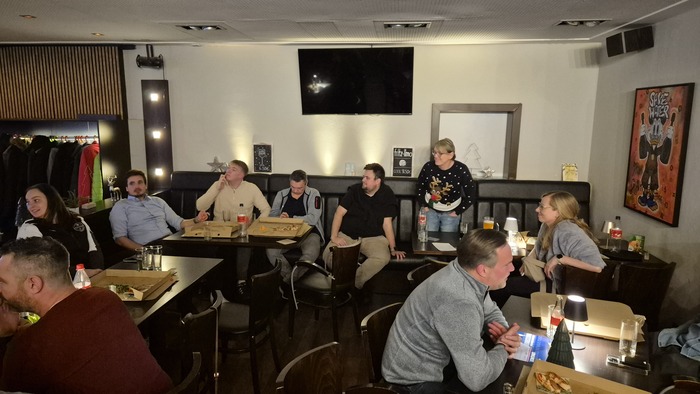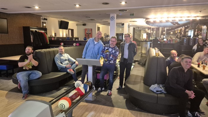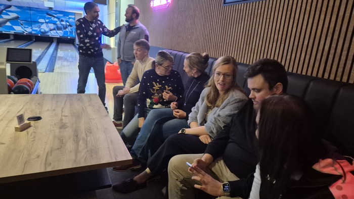 В этом году, видимо, что-то пошло не так, либо настали пресловутые "тяжёлные времена", либо отцам-командирам захотелось куртуазности, но посиделки в ресторане решили не проводить, а вместо них с большой помпой нам презентовали поход в боуллинг с последующим банкетом. Ну и никаких денег с нас не взяли. Меня уже тогда это слегка удивило, потому что на 25 евро с человека организовать банкет как-то не очень возможно.