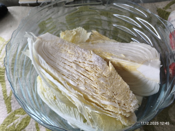 Очищаем копусту , и режем на четыре части