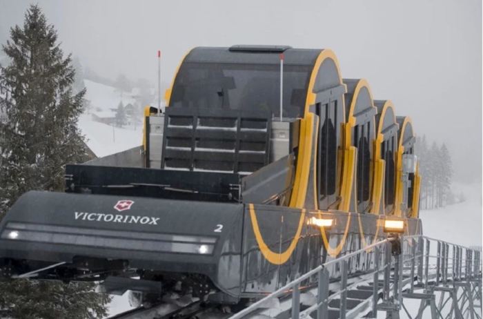 Как и у обычного фуникулёра, оба вагона связаны тросом неизменяемой длины.