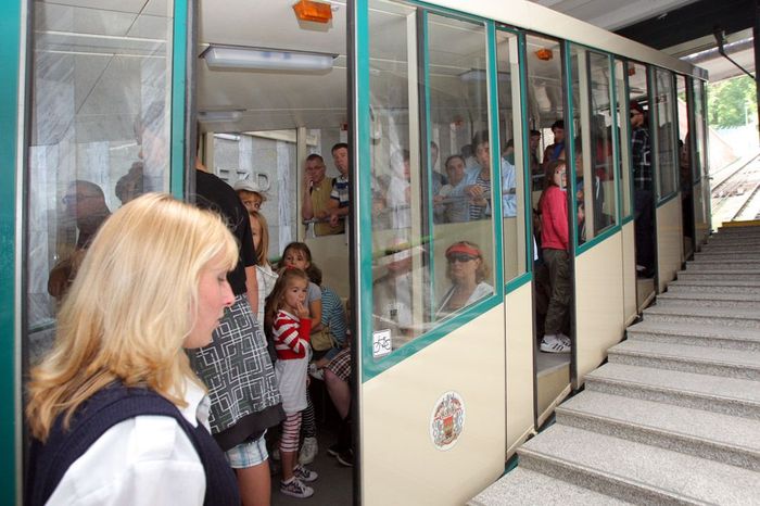 Правда, все же фуникулер скорее больше привлекает туристов, которые валят на него толпами. Чтобы попасть внутрь надо отстоять чуть ли не пол часа в очереди даже в будний день.