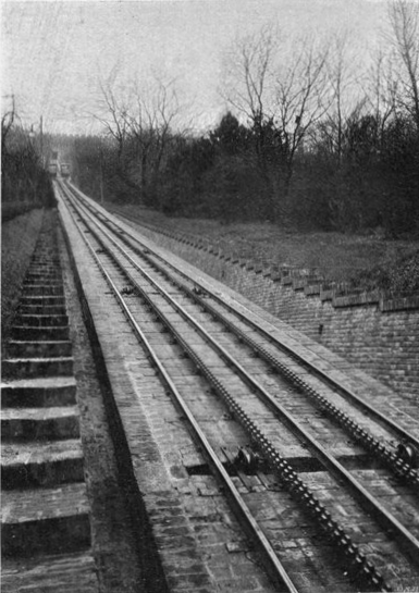 Первоначально имел метровую колею, водяной балласт и даже зубчатый рельс в качестве меры безопасности.