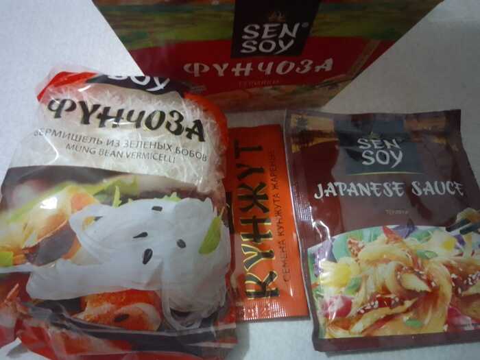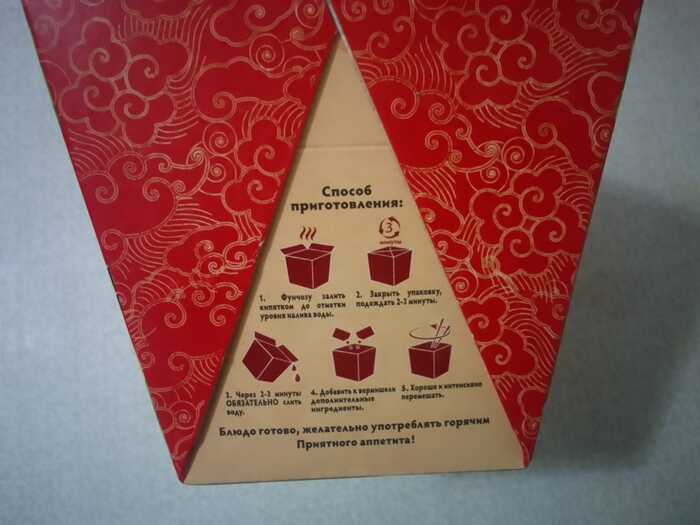 Такой формат очень редок для России в плане фунчозы (в основном-обычные пачки или миски), ну а сейчас, наконец посмотрим на неё!
