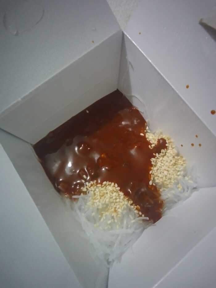 В наборе:большой кусочек фунчозы, овощи и сухие специи, соевый соус, терияки и.... Вилочка!!!