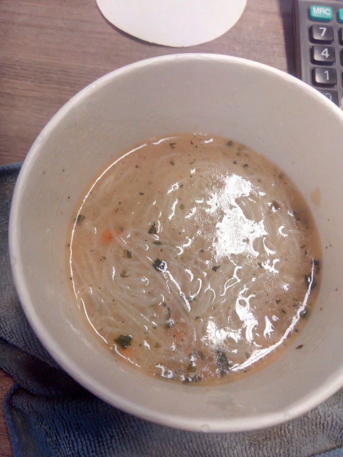 Бульона достаточно много. Можно было наливать воды по нижнюю отметку. Бульон очень вкусный. Яркий томатный вкус с небольшой кислинкой и совсем не острый. По соли тоже почти идеально. Рыбного вкуса не чувствуется совсем.