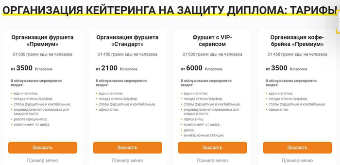 Площадка агрегирует предложения от сотен кейтеринговых компаний, позволяя сравнивать меню, цены и отзывы.
