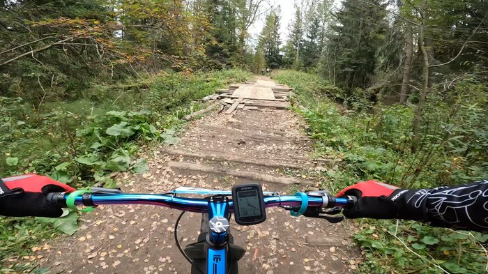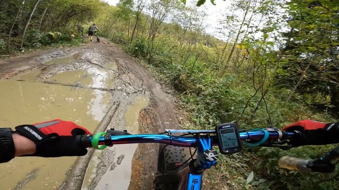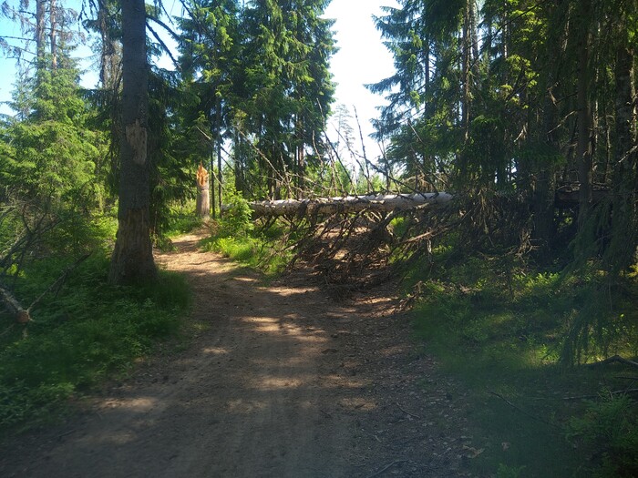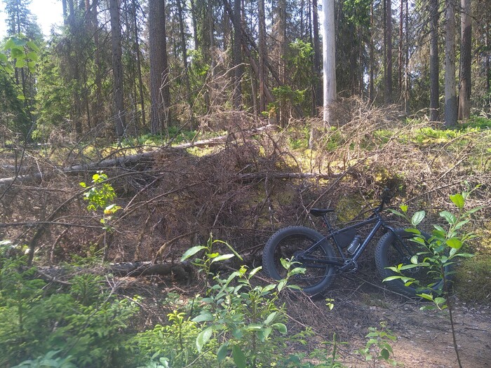 Но на одной из дорожек встречаю мужчину на стареньком Трек, который предупреждает, что дальше дорога завалена и придется пробираться пешком.