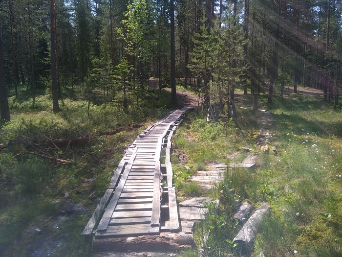 Дорог тут множество, произвольно выбираю дороги, держа общее направление. Через многочисленные ручьи и болотины проложены мостки.