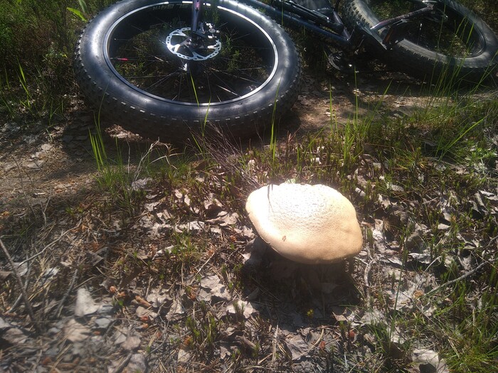 А за ней... Глазам не поверил. Прямо посреди дороги огромный, старый, уже выцветший подосиновик.
