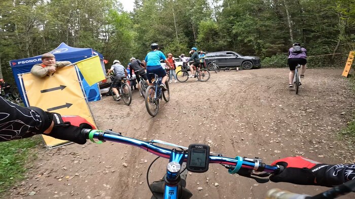 Ближе к концу круга был песчаный подъем, где куча народу идет пешком и мешает ехать: