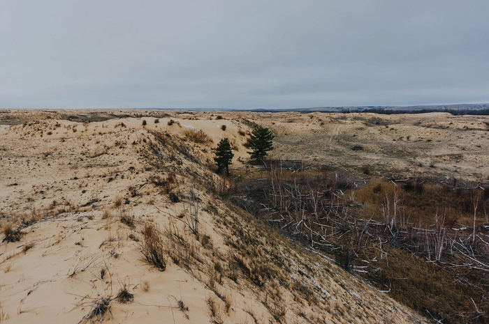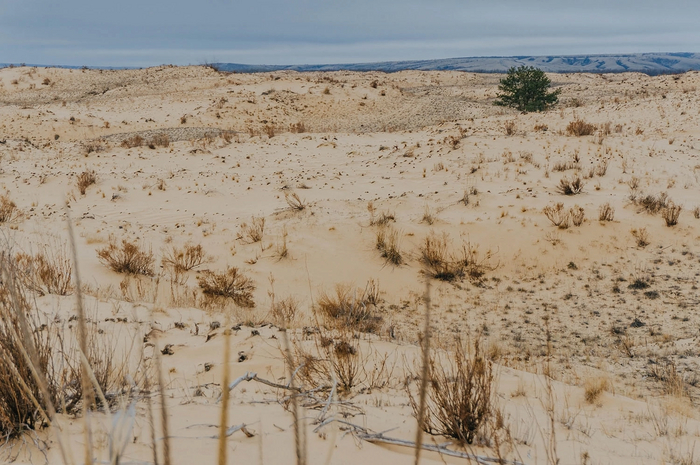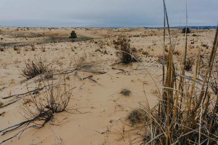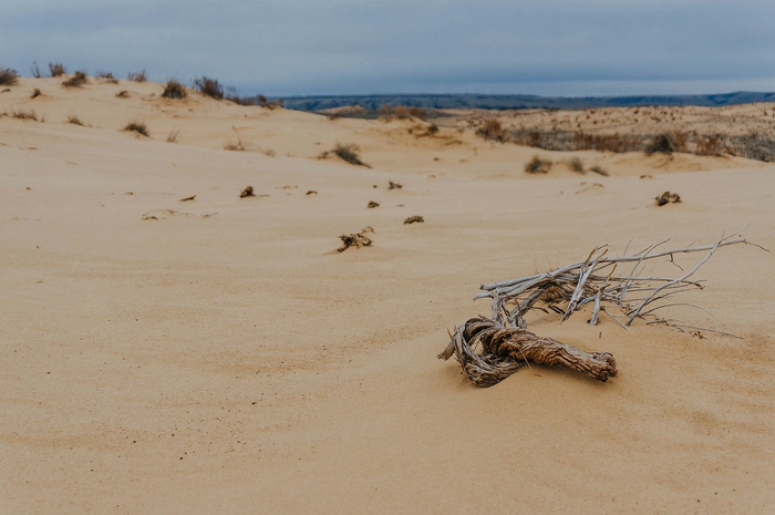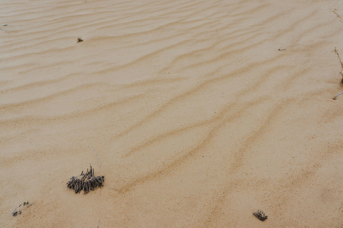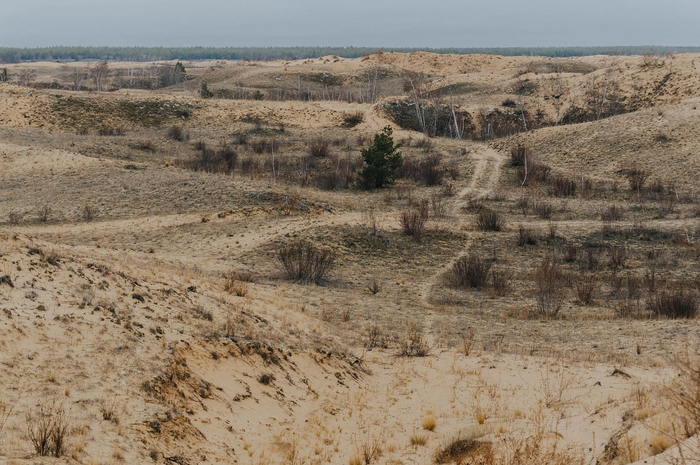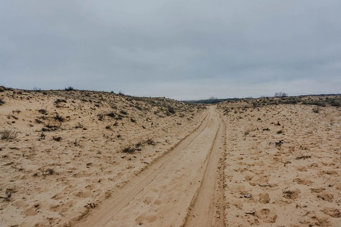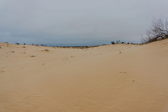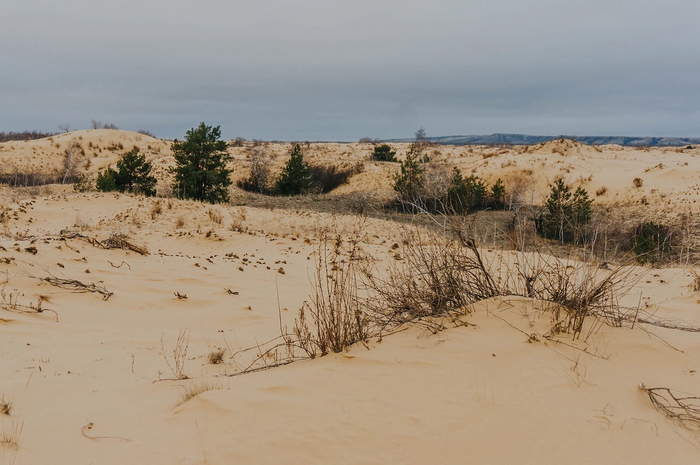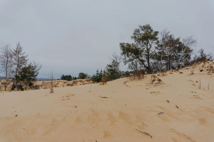 На больших участках растительности не было вообще - только ровный голый песок. Влага в нём замёрзла на морозе и местами он был твердым, как бетон.