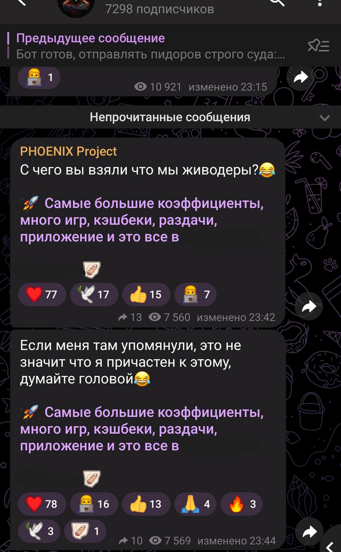 Иногда телеграмм исполняет запросы Роскомнадзора на бан подобных каналов долго, а иногда быстро. На текущий момент канал живодёрки существует уже 2 дня, а каналы с рекламой до 4 дней.