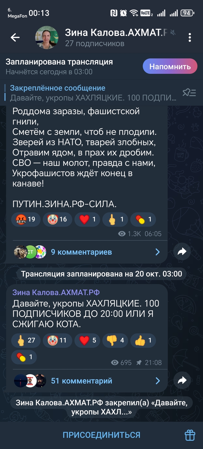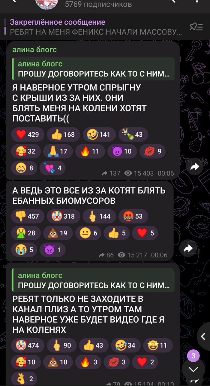 Ребят, чем больше вы пытаетесь бороться с живодерскими каналами, чем активнее подключаете к этому своих сверстников, тем больше их создается. Вы сами этим каналам таким образом даете охваты.