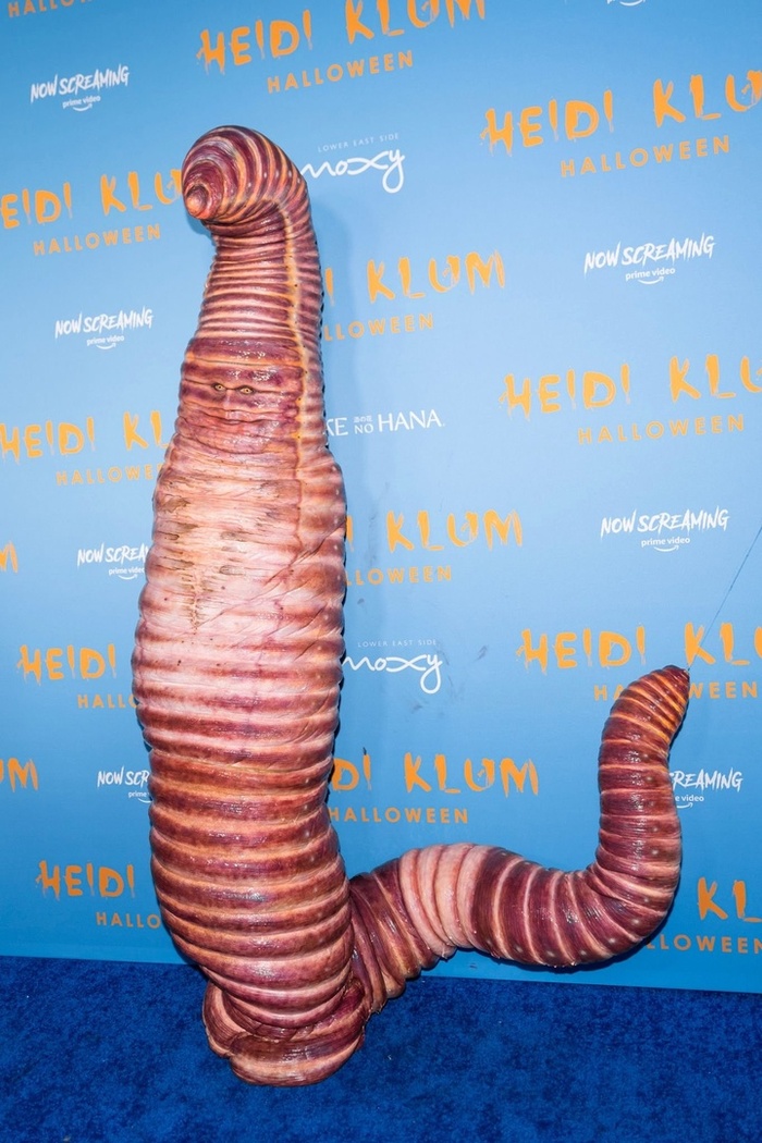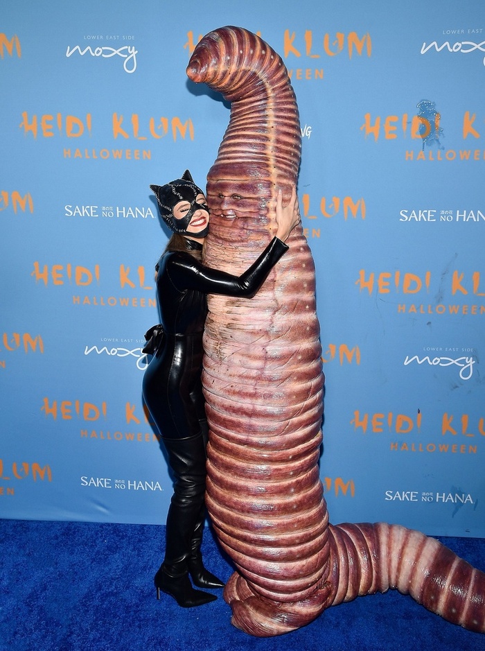 Хайди в очередной раз показала свою любовь к Хэллоуину, появившись в костюме червя, а её муж Том Каулитц в образе рыбака. Не зря Хайди Клум считают «Королёвой Хэллоуина».