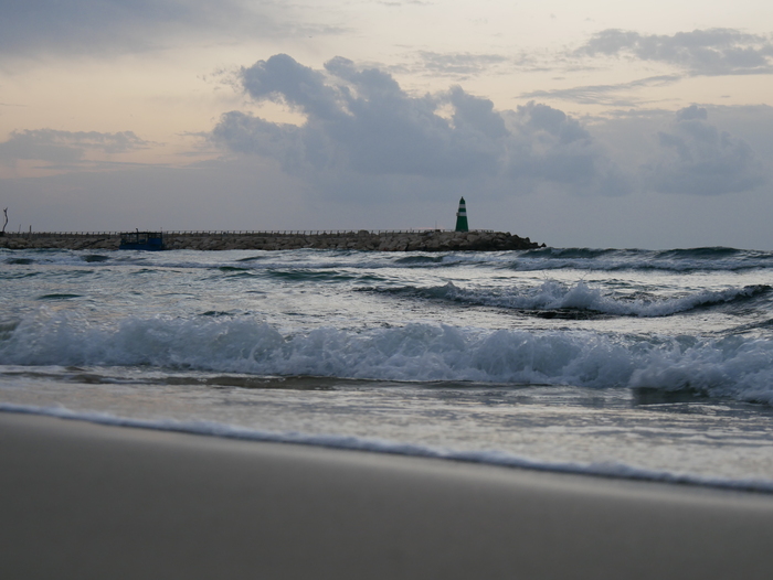 Сразу дошли до моря, пока сильно не стемнело, побродили по пляжу, полюбовались волнами и сёрферами