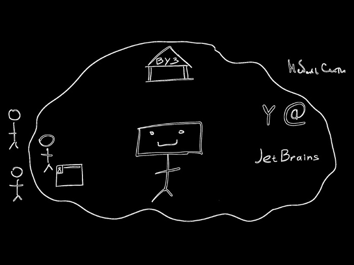 На самом деле, мы были уверены, что написать код получше можно и вне этих стен, а вот концепцию продукта нужно показать и обосновать именно здесь и сейчас во всех красках.