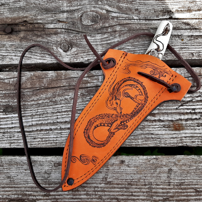 Ножны из натуральной кожи КРС с выполненной вручную пирографией