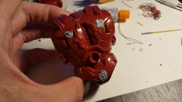На наплечниках фигурки есть не эстетичная плоскость. На настоящем Х это выглядит сильно по другому, но я решил, что не сильно буду заморачиваться и просто слеплю чё нить.
