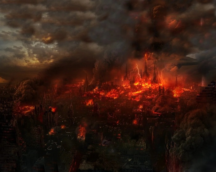 Вопль, не стихая, звучал и звучал, отчаяние и ненависть в нём были так велики, что зажгли сам воздух, и огонь, взметнувшись на сотни метров, начал распространяться с огромной скоростью. Горел бетон, горело железо, горели пластик и керамика - и дома, не выдерживая, рушились, поднимая в воздух тучи пепла и пыли. И среди этого хаоса продолжал падать вертолет.