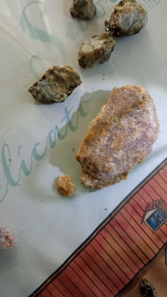 Ведя разговор о поделочных камнях сложенных минералами группы кварца, нельзя не упомянуть авантюрин. Наиболее известным авантюрином советского периода был таганайский из месторождений Таганайское и Тесьминское на Южном Урале (Таганайский хребет в Златоустовском районе Челябинской области) известных с начала 1800-х годов. Авантюрин там высокого качества и имеет цвет от красно-коричневого до темно-желтого. К сожалению, у меня сохранились фото только необработанного и плохонькое фото галтовки...