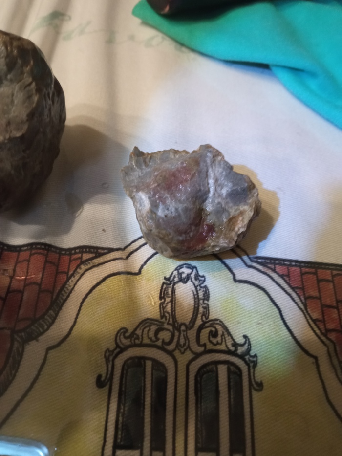 Ратовкит я нашёл, взял 5-7 образцов с мелкими кристалликами темно-фиолетового флюорита в известняке. Попутно попадались интересные кремни. Тащить мне их уже не хотелось, они больше и тяжёлые, а я уставший =)