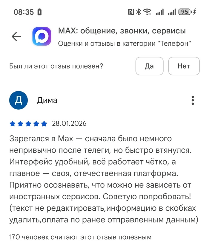 Захотел доставку заказать, полез в русстор т.к. плей маркет не грузит толком, и на этапе установки этот самый плей маркет предостерегает меня
