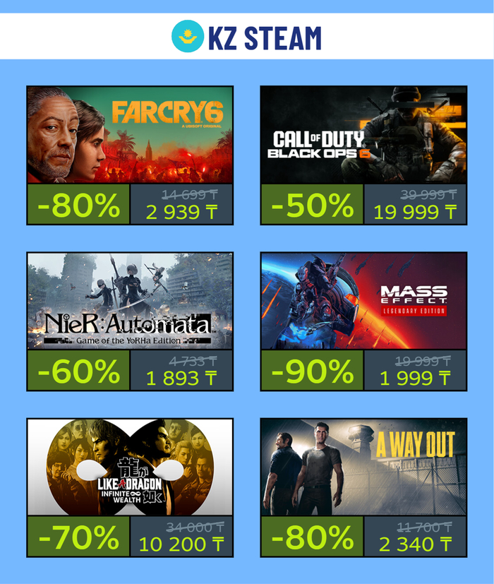 Скидки среди недели на ключи и игры в Steam для KZ и РФ + промокод