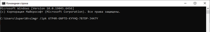 2. Вводим slmgr /ipk 6TP4R-GNPTD-KYYHQ-7B7DP-J447Y