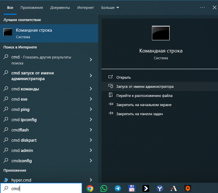 Запускаем CMD с правами администратора.