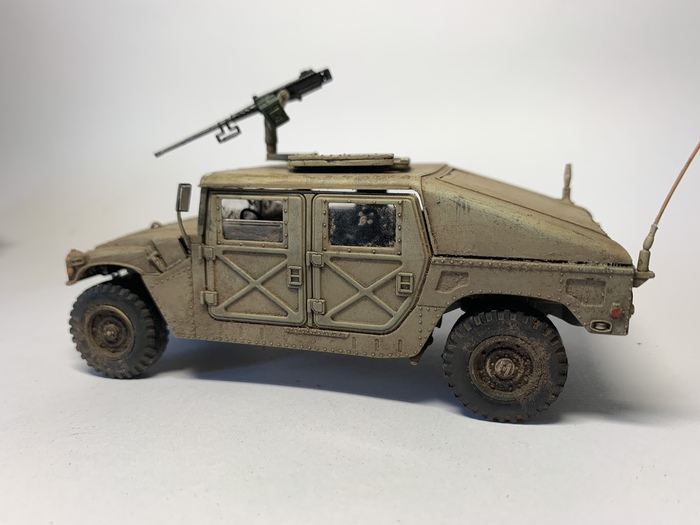 Как обычно собирал изкаробки, Первым собирался Хамви M-966 (да да, тот что с комплексом TOW, но как по мне, он выглядит немного нелепо и я решил собрать версию с браунингом) на нем я и испытывал новый аерограф и подбирал краску.
