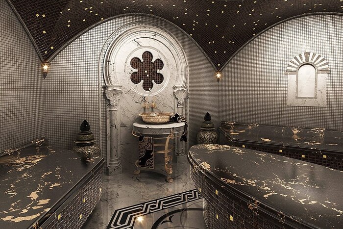 В отличие от сауны или русской бани, хаммам предлагает более мягкое и влажное тепло. Помещение обычно состоит из нескольких комнат: