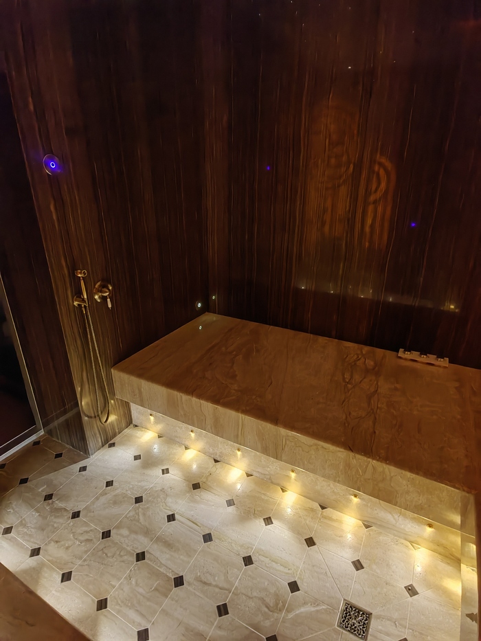 Есть пришедшие из тренажёрного зала или после каких-то занятий, желающие в хамаме догнаться по спорту.