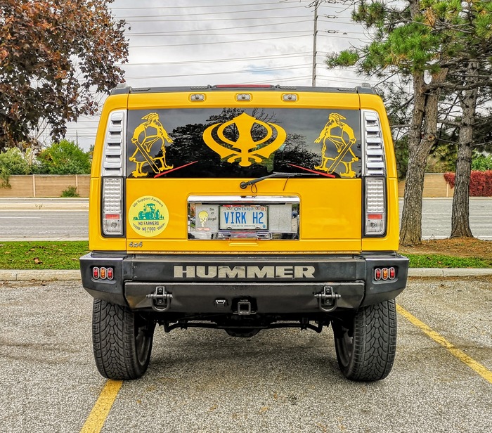 Этот чудо-Хаммер паркуется возле соседнего офиса. Видно, что хозяин - риэлтор сикх, любит свой Хаммер и по серьезному заморочился с его тюнингом. Теперь машина привлекает внимание людей и, заодно, рекламирует своего хозяиина. А может так и было задумано. Как говорится Ача-ача!