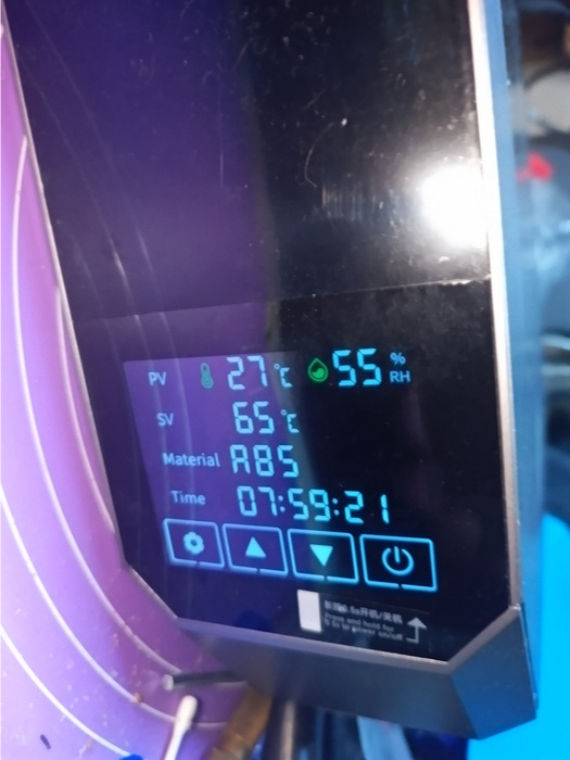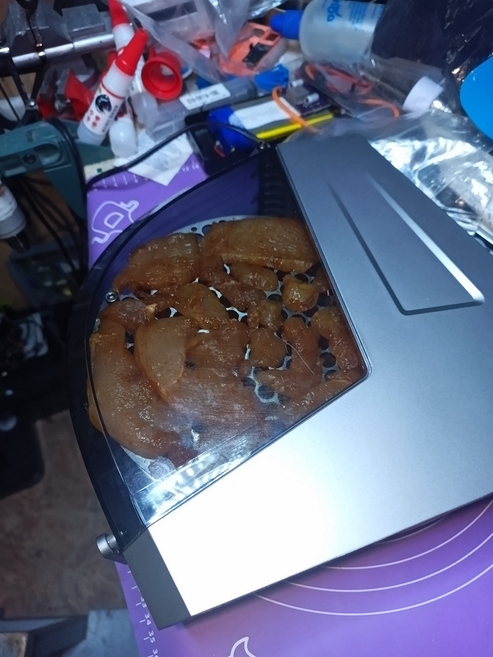 Пришлось немного повозится. Во первых умудриться приоткрыть крышку сушки ровно настолько, чтоб и вода испарялась, а не оседала на пластике и сушка не выключалась с ошибкой ER (ошибка нагрева). Во вторых температура и время. Опытным путем температуру поставил на 5 градусов выше рекомендованной, а время продлевал дважды. По итогу вместо положенных 6 часов, потребовалось 9.